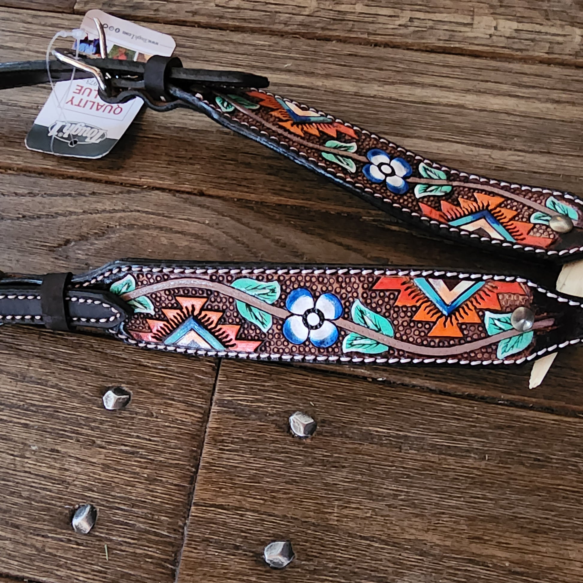 This colorful and vibrant tooled pattern reminds me of Alaskan sunsets and forget-me-nots. It's my favorite from this brand! Sold separately or as a set.